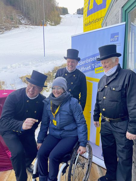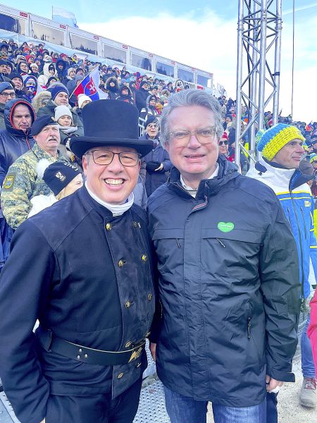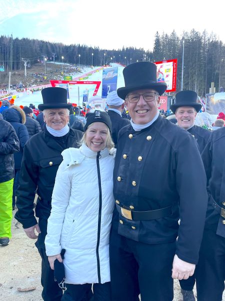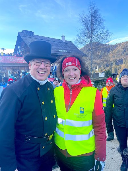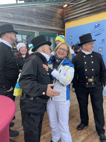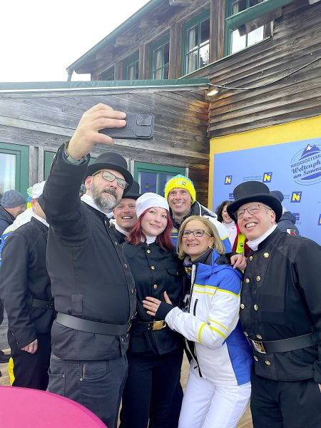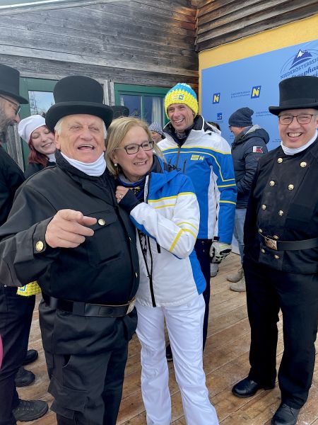 NÖ Landeshauptfrau Johanna Mikl-Leitner und Landesrat Jochen Danninger, sowie der steirische Landeshauptmann Christopher Drexler freuten sich über die Abordnung aus Niederösterreich und drückten gemeinsam den Rauchfangkehren die Daumen für die Rennläuferinnen. Aber auch die Besucher:innen freuten sich über die schwarzen Glücksbringer und drehten nach altem Brauch fleißig an den Knöpfen der Uniformen, um auch selbst Glück zu erhalten.