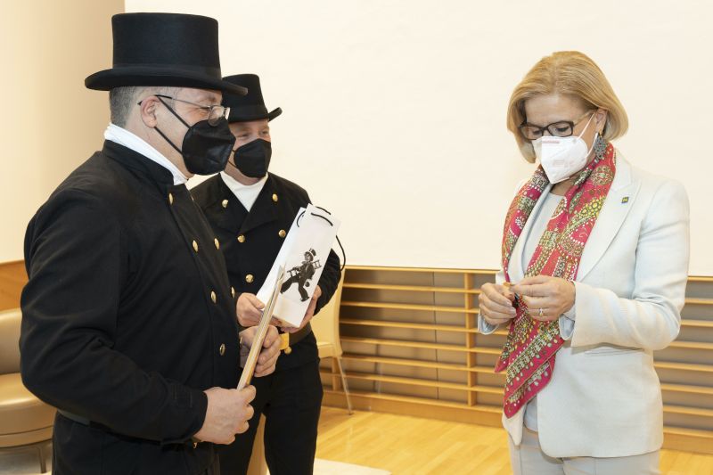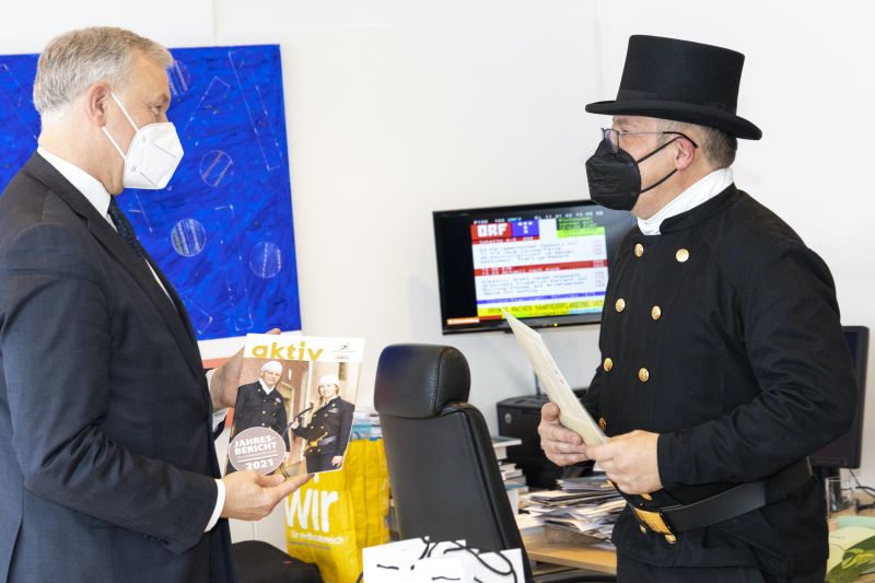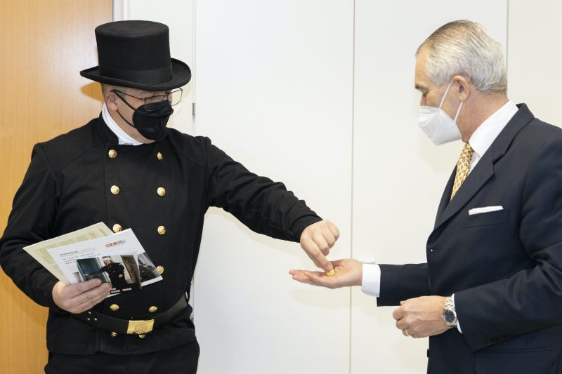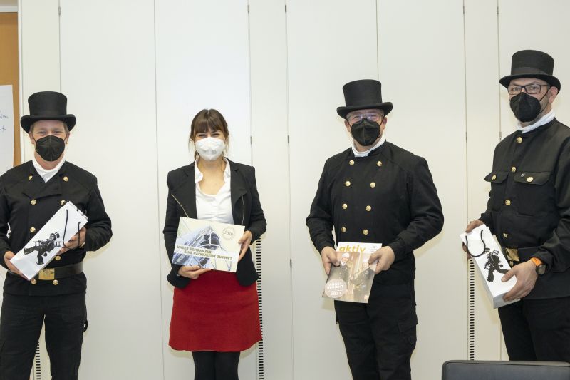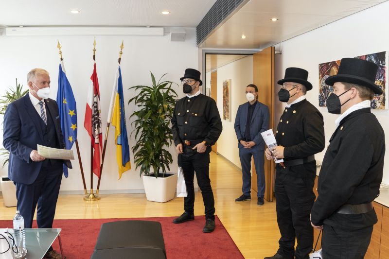Auch wenn keine Hände geschüttelt werden konnten, überreichten die Rauchfangkehrer als lebendige Glücksbringer den Vertretern der Landesregierung Glücksmünzen um eine gute Portion Glück zu überbringen. Neben dieser symbolischen Geste wurde das Treffen aber auch für persönliche Gespräche über wichtige Themen genutzt. Beim Durchblättern des überbrachten Jahresberichts zeigte sich die Politik und die Beamtenschaft beeindruckt über die umfangreichen Aktivitäten der Rauchfangkehrer in NÖ.
