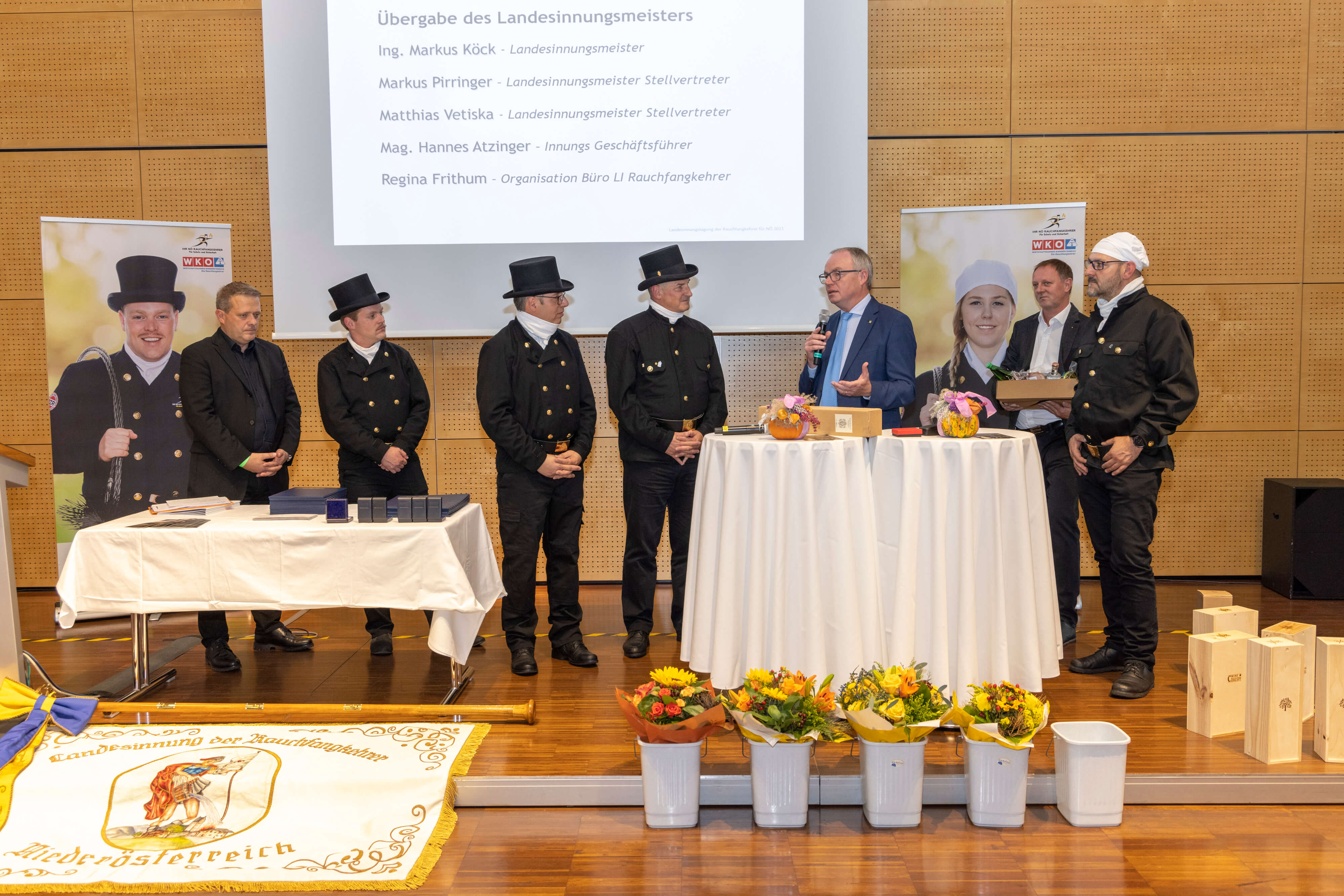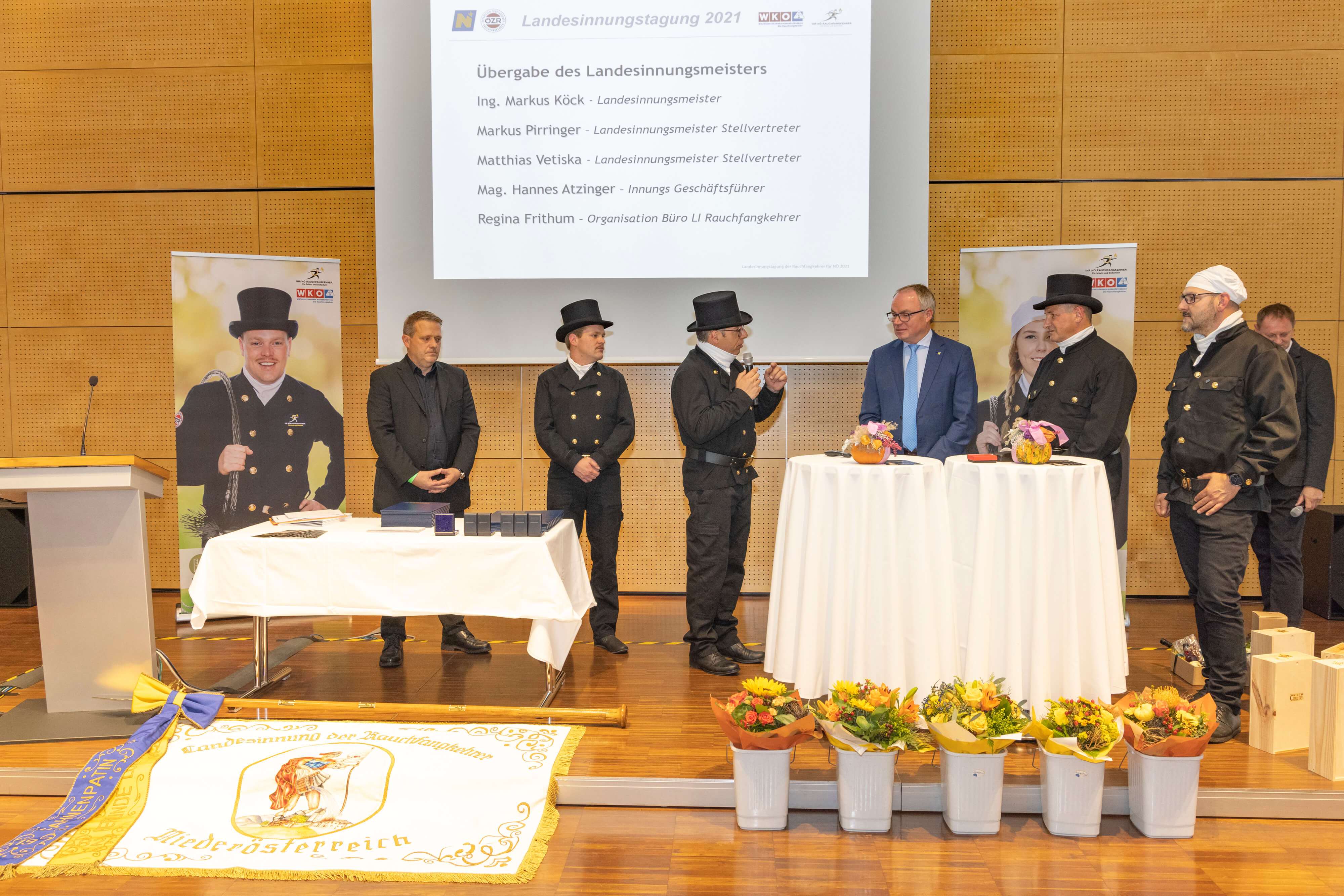 Im Rahmen der Landesinnungstag der Rauchfangkehrer für Niederösterreich in der Landesfeuerwehrschule in Tulln fand die Übergabe der Spitze der Niederösterreichischen Rauchfangkehrer statt. Kolleginnen und Kollegen aus allen Landesteilen Niederösterreichs, sowie Vertreter der NÖ Landesregierung, des NÖ Feuerwehrverbandes unter weitere zahlreichen Ehrengäste waren zur Tagung nach Tulln gekommen.