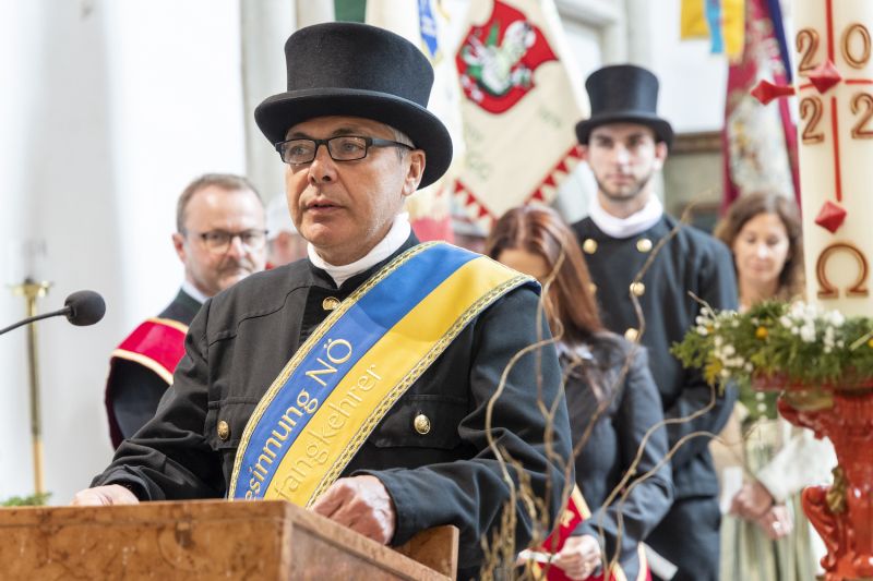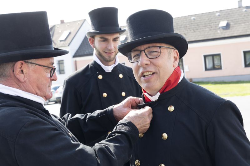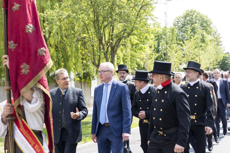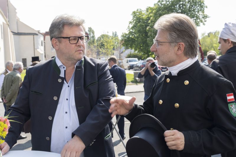 Die Gastgeber Landesinnungsmeister Markus Köck für die Landesinnung der Rauchfangkehrer und Franz Kubena für die Landesinnung der Hafner betonten in einem gemeinsamen Interview die Bedeutung des traditionellen Handwerks in unserer heutigen Zeit. In diese Kerbe schlug auch LHStv. Stephan Pernkopf in seiner Festansprache: „Versorgungssicherheit, Sicheres Heizen und Energieeffizienz sind wesentliche Faktoren, für die die Rauchfangkehrer und die Hafner verlässliche Garanten sind.“ Nach dem Festgottesdienst begab sich der Festzug angeführt von der Musikkapelle Marchegg und zahlreichen Fahnenabordnungen zum Landesausstellungsgelände, wo der Festtag des Heiligen Florian seinen gemütlichen Ausklang fand.